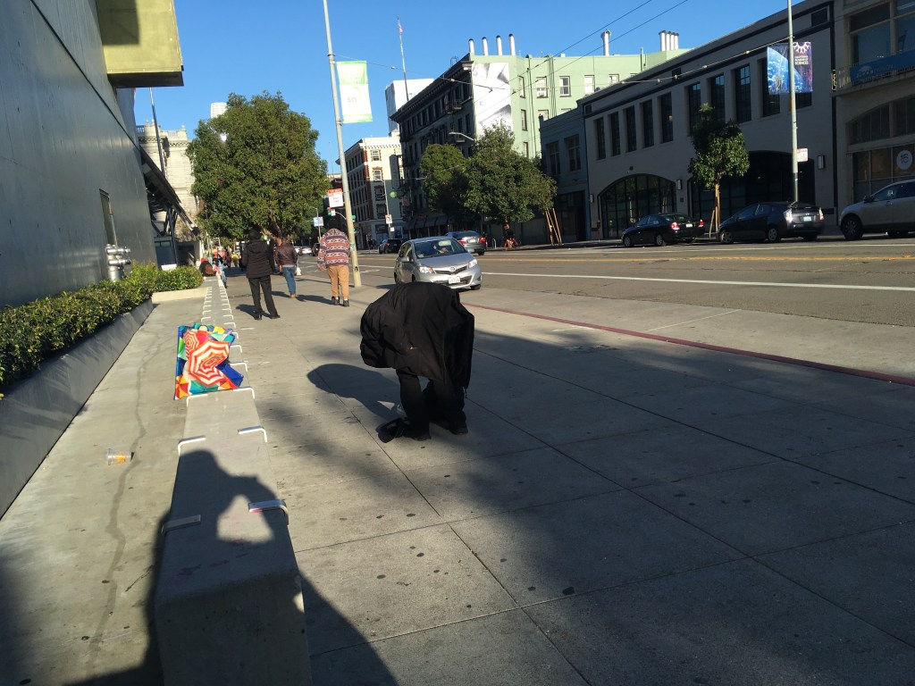 It was dark, we were walking along the Bay Trail, in a semi-industrial area near the Oakport soccer field, and there were very few people around. All evening we had been discussing love. She had decided a guy she last talked to four or five weeks ago, who lives somewhere near 28th Street, is in love with her, because their minds met while one or the other of them were taking drugs recently, and she had further decided he is her boyfriend, although she hasn’t seen him for weeks and wasn’t sure she even liked him. She said she really really needed bus money to go see him, although she doesn’t know where he lives–she planned to just keep walking the geneeral area asking strangers where he lived.